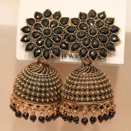 TIRTH Exclusive Black Stone Jhumka Earrings