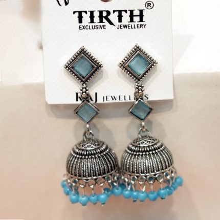 Sky Blue Oxidised Jhumka Earrings